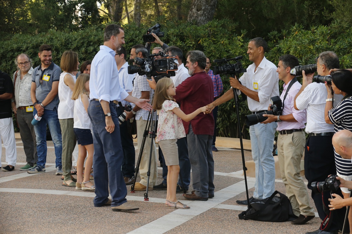 It has also become a tradition for the King and Queen, and their daughters, Princess Leonor and Infanta Sofia, to greet members of the press during a photo-op.