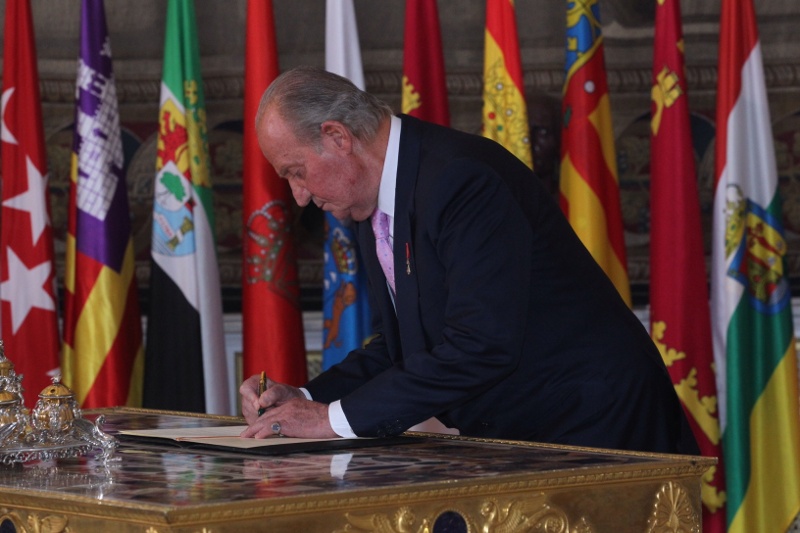 King Juan Carlos signing abdication papers in 2014. Spanish Royal Household