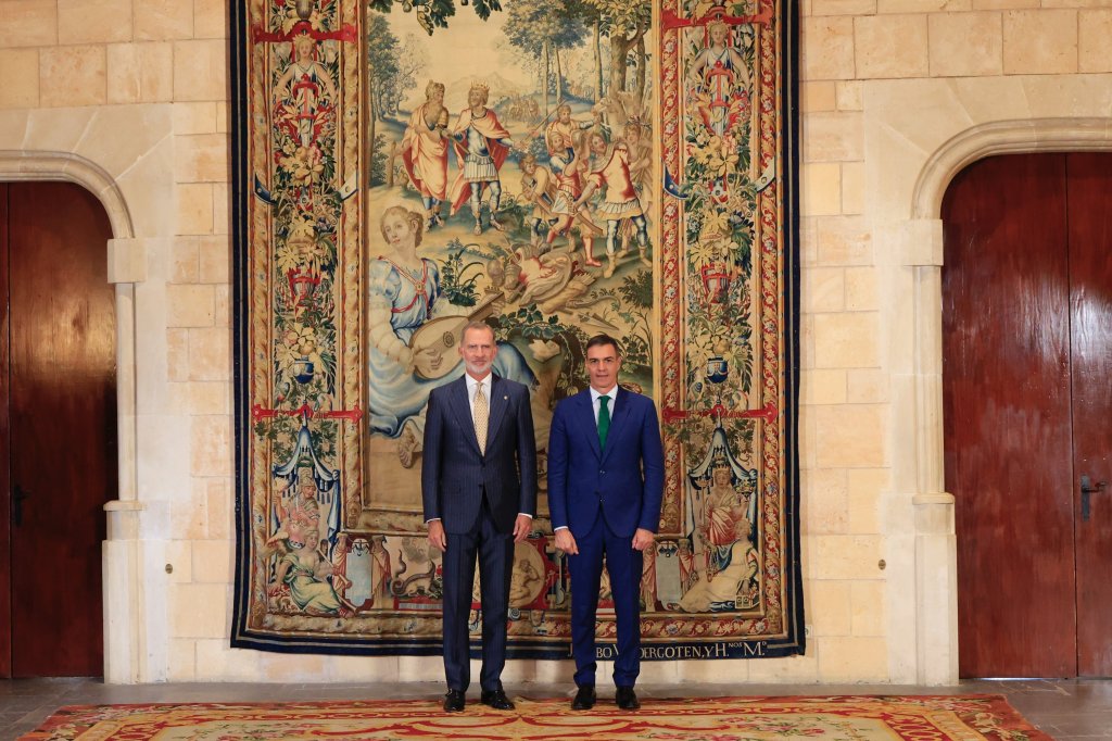 King Felipe meeting with with Prime Minister Pedro Sánchez at Almudaina Palace in Palma. Spanish Royal Household